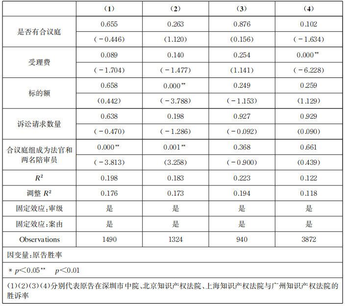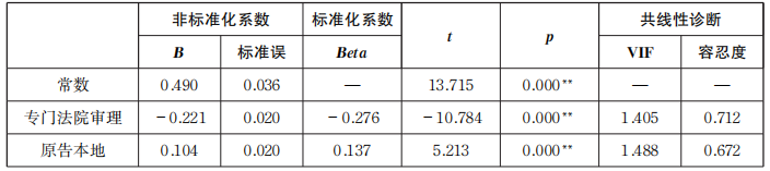 (一)对于专门法院克服司法地方保护主义的回归结果
