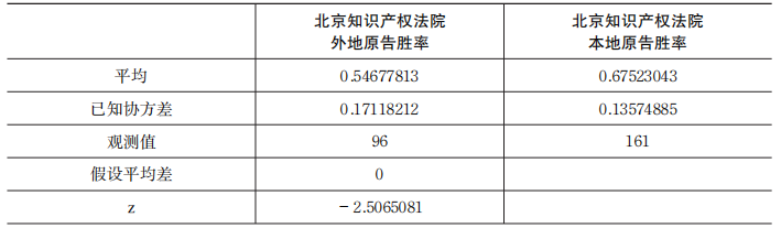 表1 z-检验:双样本均值分析